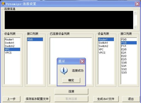 将虚拟网卡XPC的P0/0口和Router1的F1/0口链接起来。