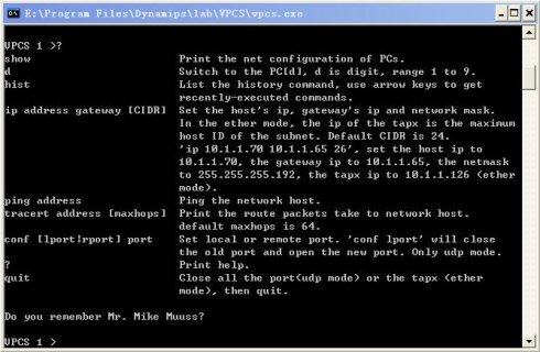 在vpcs文件夹下双击vpcs.exe启动vpc。