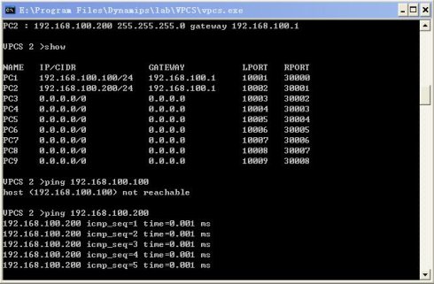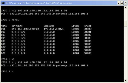 使用1-9数字在vpcs间切换。