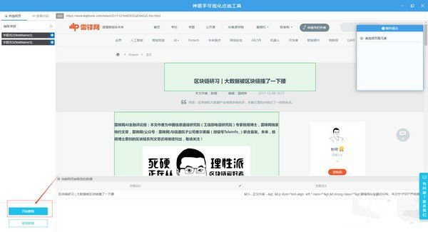 然后,在显示的网页内容中,点击选择要采集的数据,比如选择采集文章的标题和内容:
