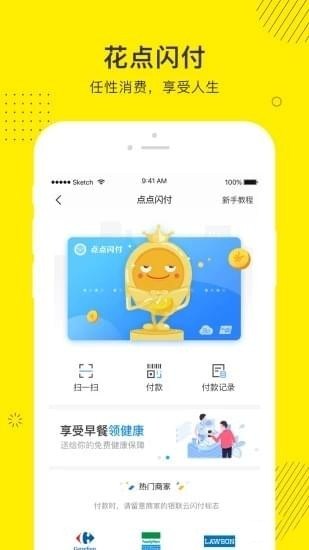 点点闪付:银联云闪付的成员机构,点一点就能付。消费场景丰富,覆盖线上线下的银联二维码支付。支持信用消费,激活更多消费金融需求。