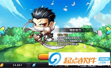 角色建立后,转职点为废弃都市附近的隐忍村(即飞花院),该职业拥有副手刀装备栏,与短刀武器结合,正如手持“双刀”战斗!暗影双刀将使用两把武器强化动作性。而且移动快,攻击距离远,并不会输给魔法师系列。该职业在抛弃防御力的同时,具备强悍的攻击力,在组队时会起攻击输出的作用。