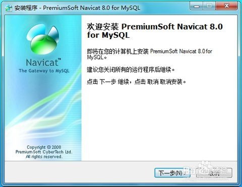 现在可以安装"navicat8lite_mysql_cs"了.方便你管理数据库,全点下一步就可以完成你的安装了。