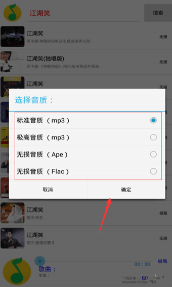 2、接下来用户需要直接点击想要下载的歌曲版本,然后从中选择好需要下载的音质,就可以成功的点击“确定”按钮进行下载了。