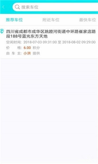 此时,如有客户准备在该停车位附近停车,他可以通过APP发布的停车信息准确定位,并安排好时间与停车位的使用者对该停车位的使用做到无缝对接,做到切实满足客户需求的效果。