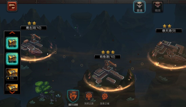 大家可以看到中间三个被火焰环绕的就是“冒险”的具体内容啦。至于下面的三个按钮,代表了玩家经历的三段冒险旅程。当然,除了这三段旅程之外,还有更加传奇的冒险等着各位玩家哦~