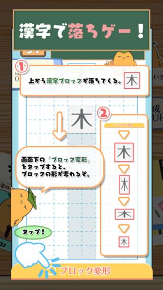 泰斗字是把从上面下下来的汉字块变形后堆积起来,把完成了的汉字用毛巾抹掉,爽快汉字谜题很好地积累汉字,瞄准大联锁吧