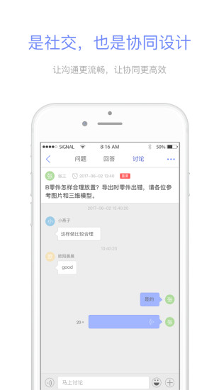 -体验多方在线的即时沟通,像聊天一样解决协同设计过程中的问题;