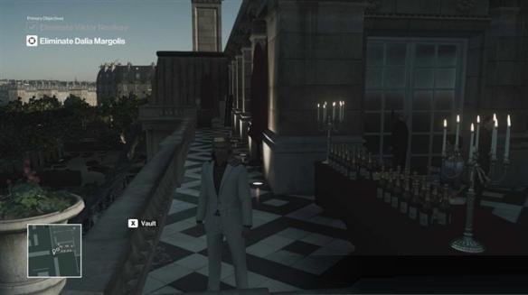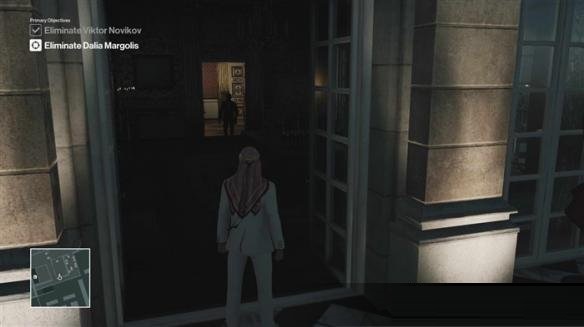在小黑快走到走廊这边的门时(也就是图中主角稍微前一点的位置)爆菊撸晕小黑,别让他看到了女目标的尸体,然后一路跑下负一楼去厨房旁边的撤离点任务完成。