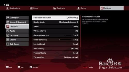 Graphics(图形):针对游戏分辨率,窗口/全屏模式,垂直同步,锁定帐数,伽马值,采样,游戏细节,抗锯齿,纹理,纹理过滤,SSAO,贴图阴影,阴影质量进行调整。