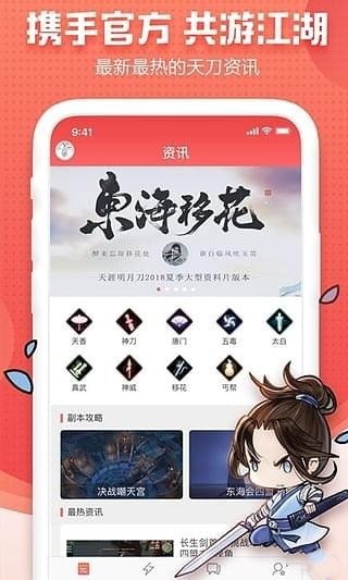 东海移花,踏浪归来。扒扒游携手天涯明月刀官方,推出扒扒游天刀专版app,为广大用户提供海量天刀资讯热点,细读精典,品味江湖。扒扒游天刀专版app用户可以在【资讯】获得我们每日精选资讯,在【热点】看到各路大神热辣点评,在【论坛】里畅快发表你的见解。