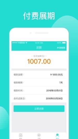 4、用户还款期限内若无法还款,君易来app支持申请延期还款,按照用户需求为所需用户提供了多种便捷放款服务。