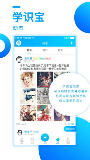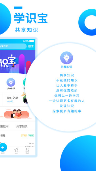 学识宝,聚集众多学习爱好者,只有你想不到,没有你学不到!你想要的这里都有,满足你各种兴趣爱好以及小学、中学、大学等各种课程;只要你够厉害,发布课程随时当老师;用学识宝共享知识,找到志同道合的人和你一起分享知识,不花钱的知识,让人爱不释手!