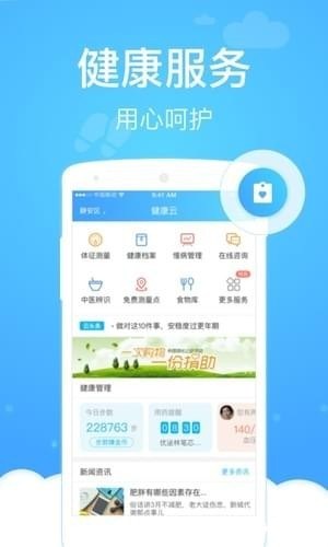 上海健康云app是一款面向市民、医生、医疗机构、政府部门的健康服务平台,上海健康云app用心、努力的打造您的健康云呵护。目前,上海健康云app覆盖全市241个社区卫生服务中心以及1000余家服务站点,覆盖率达到100%;投放物联网监测设备2488台,日均健康监测约18000人次,线上注册人数近140万人。