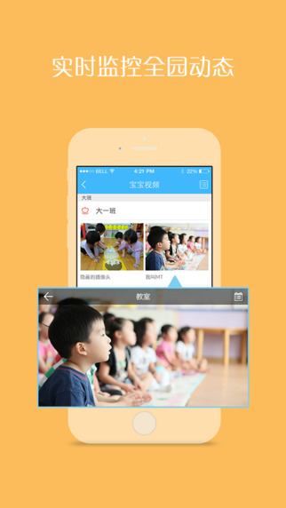 掌通家园连接家长和幼儿园,幼儿园可使用掌通家园随时发布最新动态,并通过全方位推送通知到位;教师和宝宝家庭组一对一交流互动,及时深入的沟通宝宝情况;流畅清晰的实时视频监控,让园长同时监测园内所有区域情况,保障园内安全管理;文字、照片、小视频,让教师可创作精彩纷呈的“班级相册”。宝宝入园、离园即刻提醒,加上严谨的宝宝代接流程,保证宝宝的在校安全;更有“用量报告”,供园丁查看宝宝激活数据,家长活跃数据,教师活跃排名等,为园长的管理优化指明方向,有效提升校园竞争力,是打造品牌校园的最佳工具。