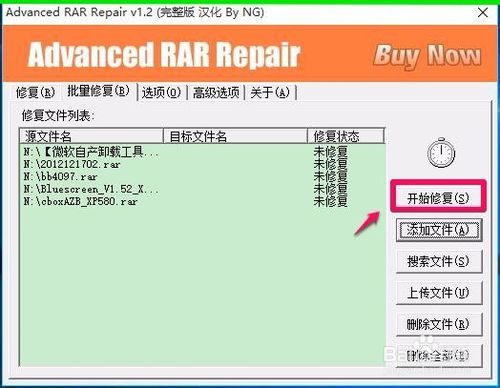 7、按第2步的方法添加需要修复的压缩文件,点击:开始修复(S);