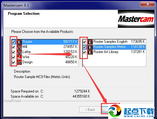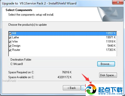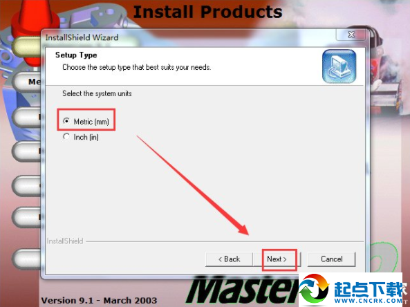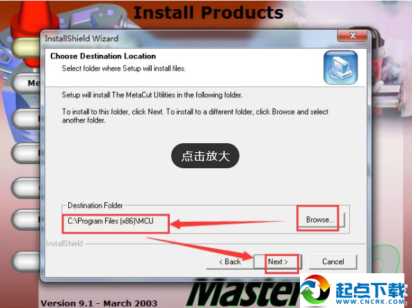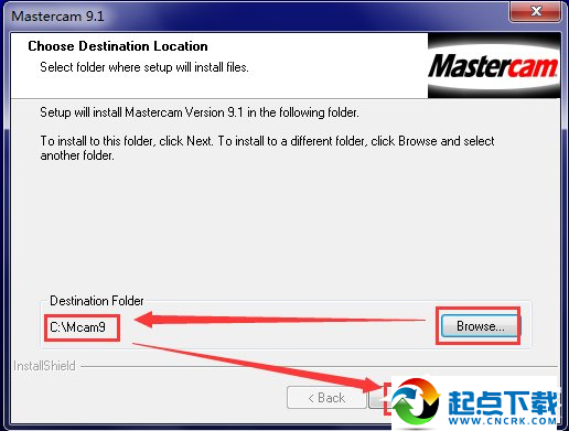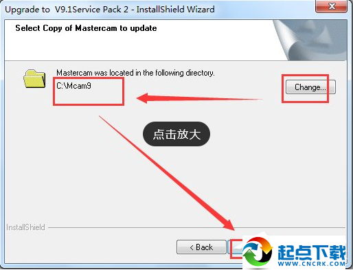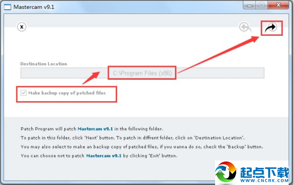 6.选择好mastercam9.1的安装路径,然后把 make backup cope of patched files前面的对勾打上,然后点击下一步