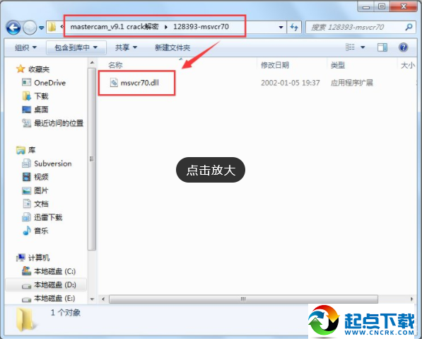 1.在软件中,打开crack/mastercam_v9.1 crack解密/128393-msvcr70文件夹,我们可以看到 msvcr70.dll 文件,并把文件进行复制