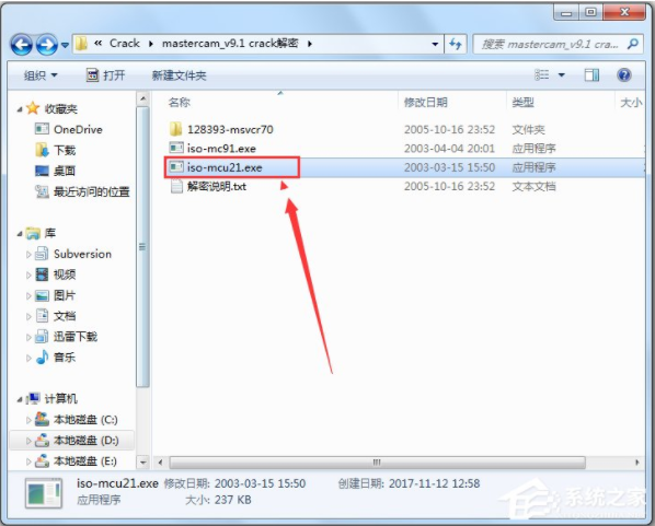9.然后在破解文件下,单击 iso-mcu21 程序,然后点击下一步