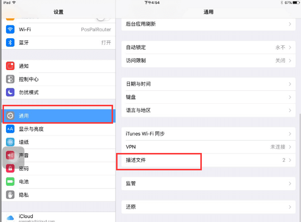 设置方法如下:1、如下图系统设置-通用-描述文件