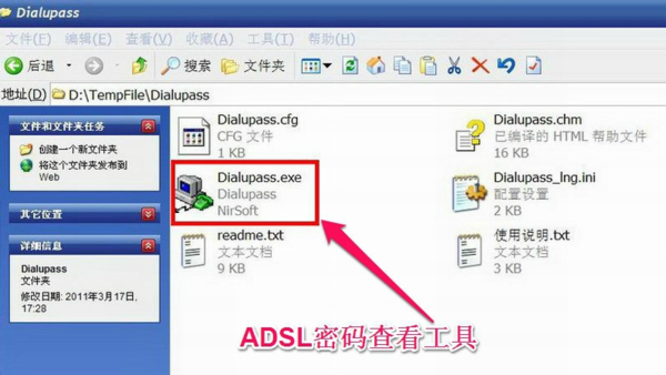 5,文件加密了怎么办,当然有办法,到网上下载一个“ADSL密码查看器”,然后解压出来。