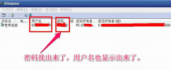 1、打开后如果这台电脑曾经登录过ADSL或者正在连接账号,可以直接找到查询结果如图。