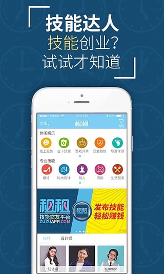 租租是一个技能交友、技能创业平台。租租,是您利用空余休闲时间,发布拿手技能,轻轻松松赚钱的技能平台。