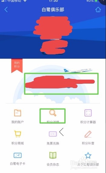打开的白鹭俱乐部界面中可以直接看到积分的总数。
