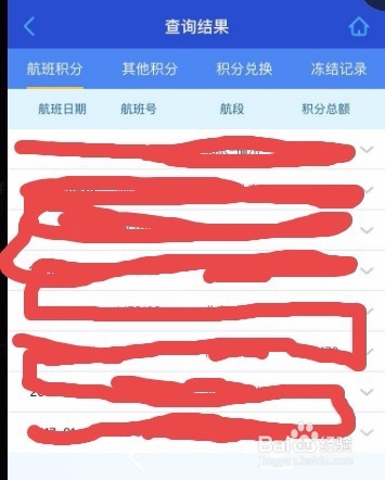 点击明细查询—选择时间周期后可以查询这一周期时间内所搭乘的航班以及对应获得的积分。