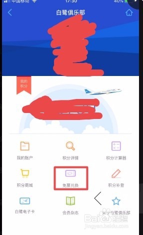 在白鹭俱乐部界面点击“免票兑换”查询可以兑换的机票即可(前提是已进行身份认证)