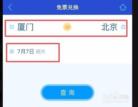 输入你想要兑换的飞行起始地及时间(如果你的会员未进行认证的情况下,先不选直接默认点击查询也可以,会需要先行认证,认证之后再回来查询)后点击查询。