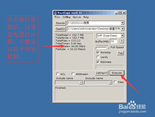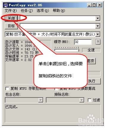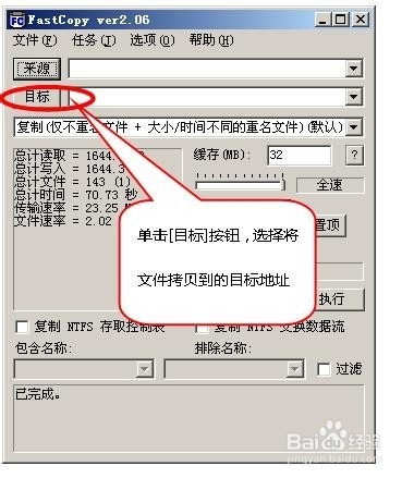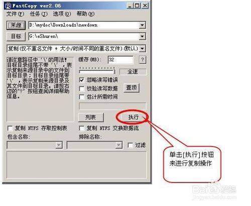 第六步,选择好文件来源与目标后,我们就可以单击[执行]按钮来进行复制操作。