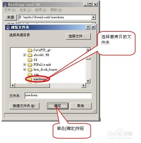 第三步,单击[来源]按钮,弹出一个窗口选择要复制或移动的文件,然后单击[确定]按钮。