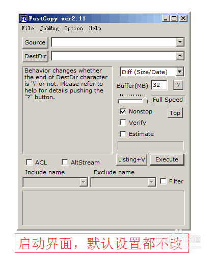 /no_exec 对Fastcopy窗口界面设置参数,但是不执行