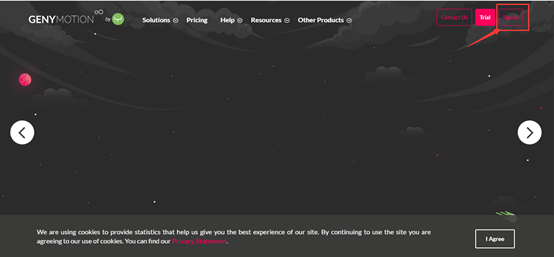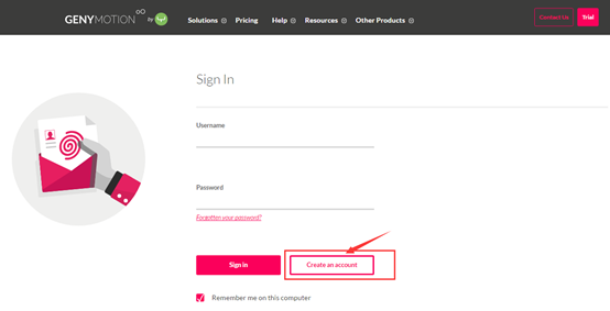 打开Genymotion官网 ,首先点击右上角的Sign in进行登录操作。如何登录就不细讲了,下面讲一下如何注册(备注:注册按钮在登录界面中)。
