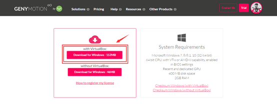 下载genymotion因为Genymotion运行需要VirtualBox,如果电脑中没安装过,建议选这个版本。