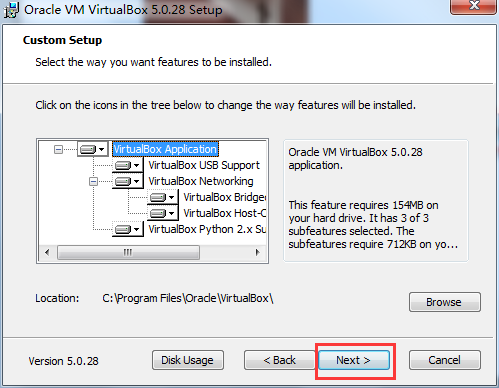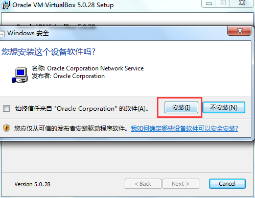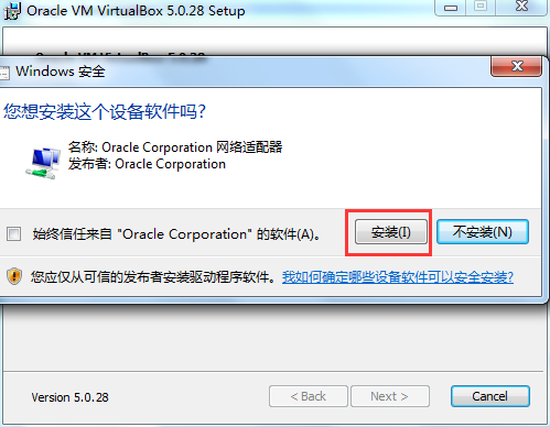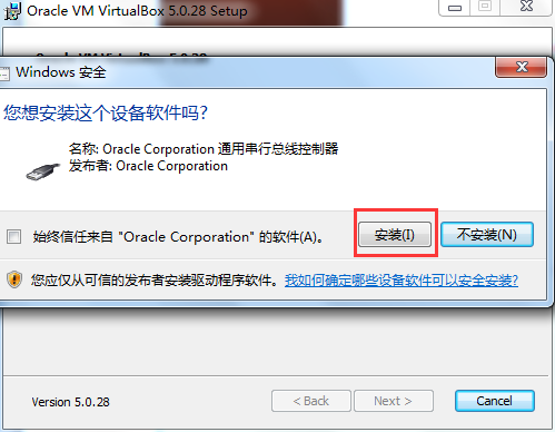因为下载的安装包含有VirtualBox,所以在安装过程中会自动进行安装VirtualBox的操作界面。