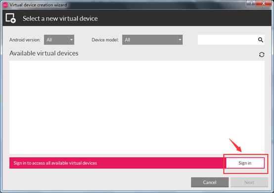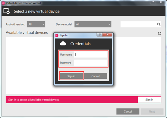 打开创建虚拟设备界面,在界面的底部提示需要登录验证。(注意:如果验证不通过,请到邮箱确认是否已经验证过)