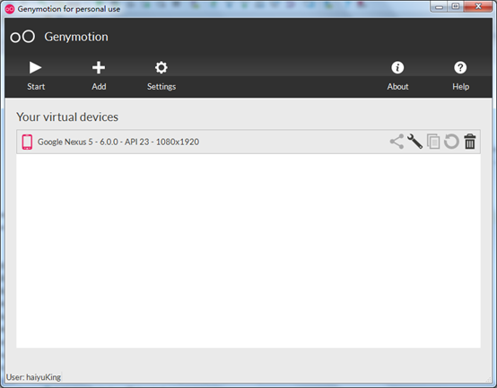 回到主窗口,选择一个我们已经添加的模拟器,点击启动按钮启动模拟器。