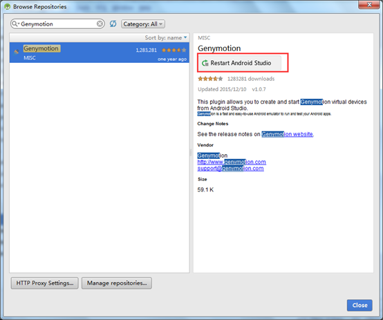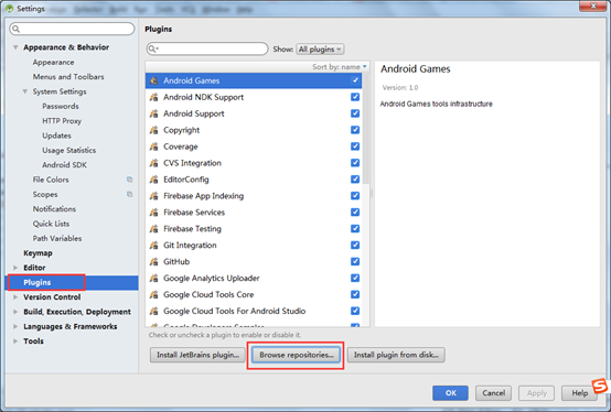 安装Genymotion插件教程打开File——Settings——Plugins——Browse Repositories界面