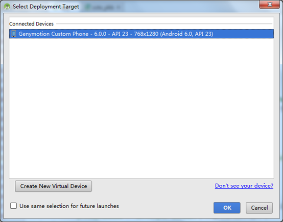 在Android Studio中run项目时看不到Genymotion创建的虚拟设备的问题