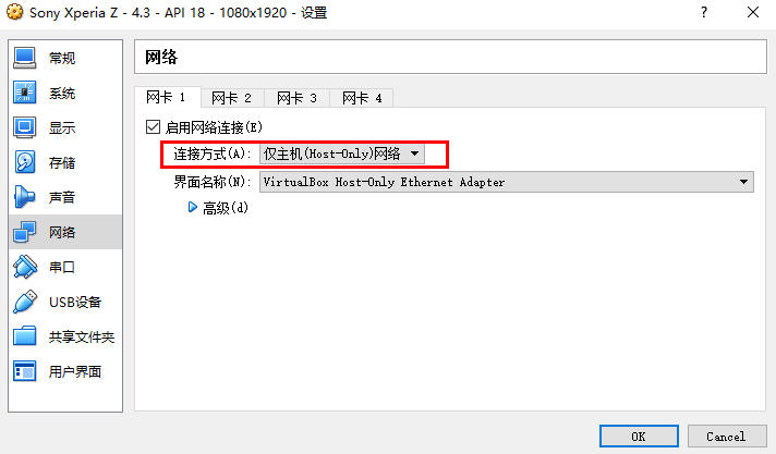 网卡1设置为: 仅主机(Host-Only)网络,网卡2设置为:网络地址转换(NAT),网卡3设置为: 仅主机(Host-Only)网络,网卡4设置为: 仅主机(Host-Only)网络,大部分情况下不需要对网卡3和网卡4做设置,使用默认设置即可,如不能上网,再尝试设置网卡3和网卡4。