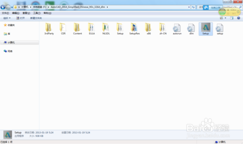 2、单击AUTOCAD2014下载后的解压程序文件夹,打开文件夹。双击“setup程序”。