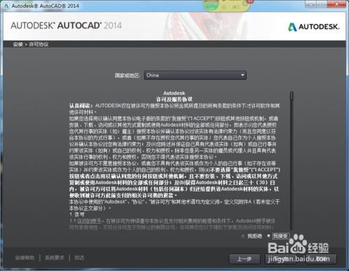 4、安装过程中跳出“许可协议”国家选择CHINESE,和点击我接受协议。然后点击下一步