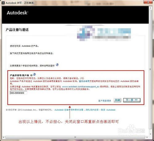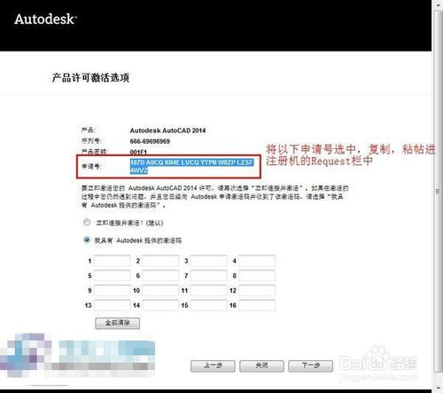 8、最后复制Activation中的激活码至“输入激活码”栏中,并点击下一步完成激活。这样就完成了Autodesk产品的注册了