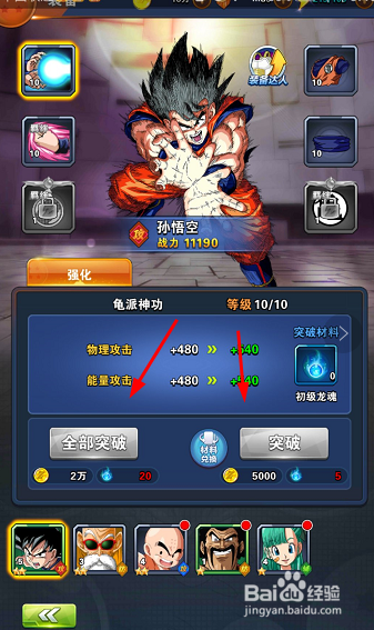 龙珠激斗战力提升攻略首先在龙珠激斗游戏的主界面,提升战力第一种方法就是进入装备里面,强化各种装备,物理和能量攻击有所突破,如图所示