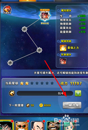 第三种提升战力方法就是升星,升星可提升属性,还可解锁技能和改变形象,如图所示