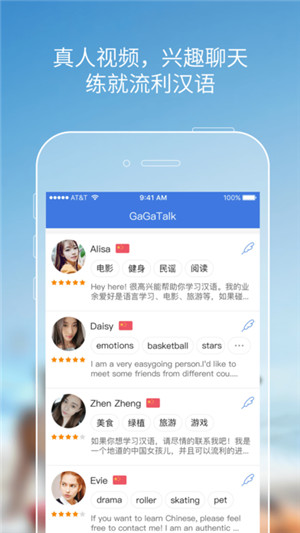 GaGaHi是一款开放性多语言翻译国际社交软件,提供全球各种语音、文字、短视频等形式的即时翻译服务,让你跨越语言沟通无限,随时随地和身边或世界各地的外国人交友聊天,结识全球友人,世界各地存知己!GaGaHi用户遍布全球180多个国家和地区,德国帅哥、美国辣妹、韩国偶吧、日本萌妹子等异国好友随意轻松畅聊,锻炼你的英语口语,帮助你了解世界各地文化,开拓眼界,丰富阅历,放眼全球,与世界沟通。