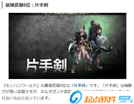 单手剑的机动性非常高,而灭尽龙武器,土砂龙武器的存在也使得你无法忽视单手剑的输出能力。