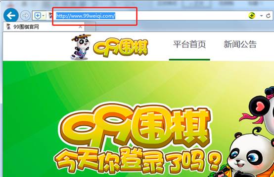 2、打开浏览器,在浏览器地址栏内输入www.99weiqi.com,按“回车键”确定;
